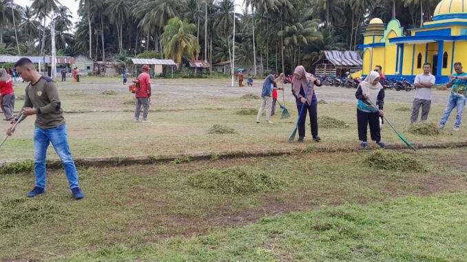 Kecamatan Suak Midai Gotong Royong di Astaka dalam persiapan Penyambutan Bupati