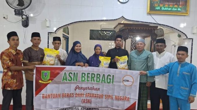 Rangkaian acara dimulai dengan Maghrib bersama dan dilanjutkan dengan ASN berbagi berupa ( Beras ) untuk Imam Masjid dan Marbot.
